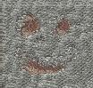 We used a two step process to generate each pixel in the result image. First, we found the window in the picture that matched our current window in the result image. In figure 2, you can see this is the upper left corner of the smile. Then, we searched through the texture to find the k windows "closest" to our picture window in terms of least mean squared error (with pixels in the window weighted by some 2D function - usually flat or gaussian). This ensures that that our pixel choice will match the corresponding pixel in the picture to some degree. The ANN VQ library natively supports searches for the k closest neighbors to any given array. (In figure 2, I have highlighted a particularly good match in the texture.) Next, we took the window we are generating from the result image and compared it against all k matches to find the one with the least error. This ensures that our final pixel choice will match the surrounding texture as well.